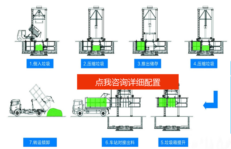 5.設(shè)有垃圾儲(chǔ)存箱,適合集裝箱式散裝垃圾運(yùn)輸車(chē)卸料,減少運(yùn)輸費(fèi)用。